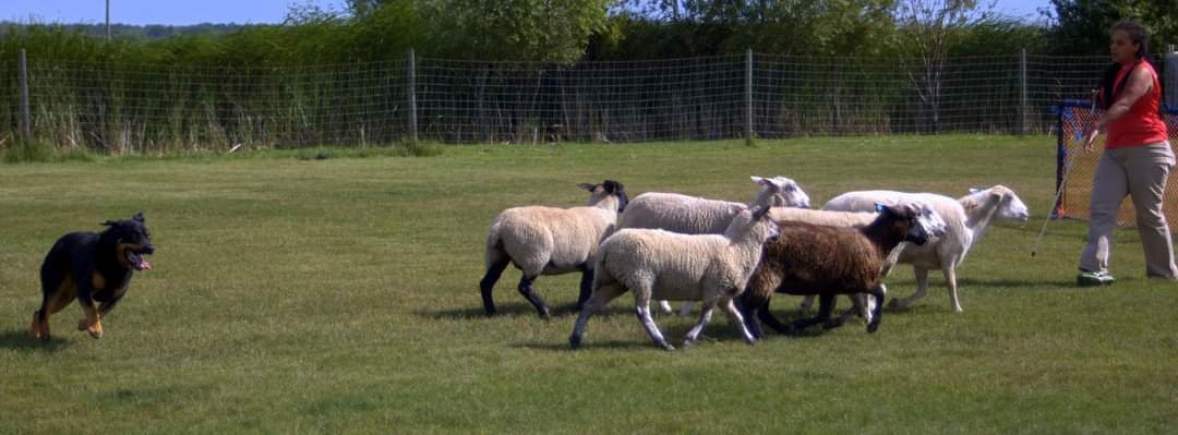A textbook example of this is that rottweilers, generally do not respond to pressure from humans or livestock in the same way a Border Collie, or Kelpie might. I once had a clinician put too much pressure on Bear by waving his stock stick. Bear’s response was to run at him and grab the stock stick out of his hand. This clinician was smart and has experience with rottweilers so he acknowledged his error and figured out another less confrontational way to get the point across.